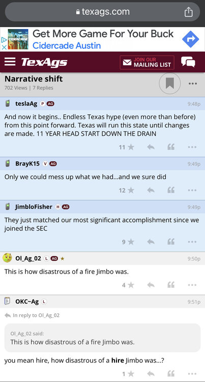 For those that went awesome to meet you. for those that never have there is nothing quite as awesome as going into enemy territory and giving them a smooth buttfucking. You should try it some time. On a serious note- this community is awesome. @immamacworks his ass off for you people and does it for love of the thing and humanity- which is funny from a site of misanthropes, and I truly believe we don’t win this game without @RGBIII @closetojumping and @SydneyCarton the talent disparity difference between what I saw against Arkansas 2 years ago and what I saw last night is night and day different and those guys made it happen. Support Texas One. WE as a fanbase have to do our part- it can’t just be the heavy hitters. They will get tapped.41 points