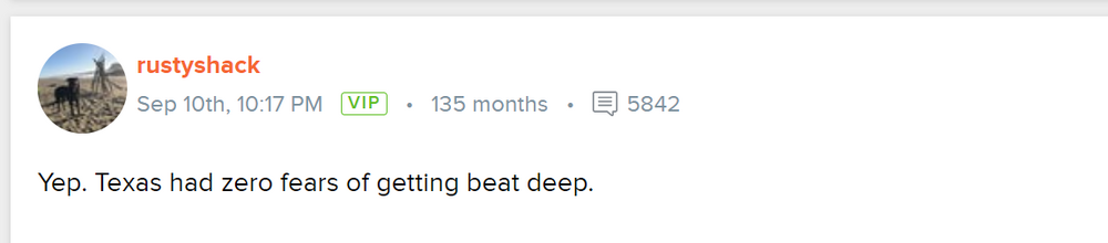 I used to worry about this when pointing out that Billy Liucci is the embodiment of every reason they'll never be a championship program. That their entire fanbase is at fault because they'd rather pay that assclown a bunch of money to tell them how special and unique they are than to pay money to someone who will actually hold the program accountable. But then I realized that I was worried about Texas A&M listening to and implementing advice received from Longhorns. Hahaha. No, we're free to continue pointing out how obvious their institutional problems are and they'll never do jack shit about it. Hell, the only ones who are open-minded enough to understand end up posting on Longhorn boards. The leading figure on the A&M internet is a guy who has been telling them leading up to every season, without fail, for over two decades that: Their players are more talented than Texas's players. Their players are more skilled than Texas's players. Their coaches are better gameday coaches than Texas's coaches. Their coaches are better recruiters than Texas's coaches. Their recruits are better prospects than Texas's recruits. For over two decades he has said every single year that everything about their program is better than Texas, and yet they've accomplished jack shit compared to Texas. Not just during our great run in the 2000s, but they haven't even accomplished more than us since they joined the SEC. They won a Cotton Bowl. They beat Alabama. That's it. They haven't even accomplished more than Texas has during one of the dark eras of our program. But if you point out that he's been selling them a load of bullshit you're hated for being a 2%er then banned. Common sense says Liucci is either lying to them on purpose to make money off of them or he's the worst fucking football analyst of all time. Either way why in the hell are you giving him your money? But they don't want to hear that because it might mean they're not as special as their moms told them they are. So he will continue to rake it in.28 points