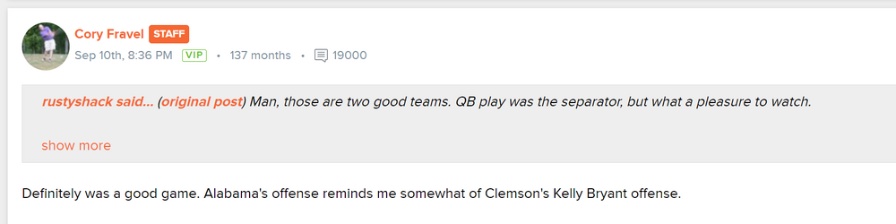 It was orgasmic. When we needed 3 first downs to run out the game, Brooks bulldozed his way for 2 of them and then we absolutely fooled Alabama into giving us the game ending one. Been a long fucking time that we got the first down(s) we needed to seal a game. No turtling, just straight up mauled them for 5 minutes and then took a couple knees.13 points