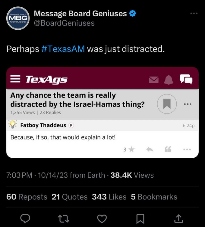 So what's the Russian government thinking in all of this? And what's Hamas think of Russia? Let's take a peak at the main Russian state-owned news agency, at one of the top stories they were running over the last 24 hours. https://tass.ru/mezhdunarodnaya-panorama/19012201 So Putin thinks that civilian casualties are unacceptable. And Hamas is happy with the backing of Russia. Gotta give the Russians and Hamas credit, they don't hide their mutual appreciation for one another, and they put it out there for the whole world to see. It also feeds into the conspiracy theories (the notion that Moscow helped or even pushed things along).11 points