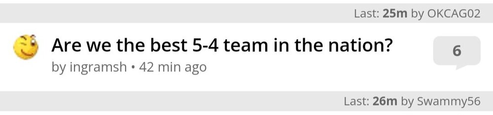The thing for me is this— This is a game we would have 100% lost in the last 13-14 seasons. Sure, I was angry we gave up a 27-7 lead with 4 min left in the 3rd, and you can be angry that Maalik isn’t the best QB right now, but one thing you can’t be mad at is this team doesn’t seem to give up easily. I saw the defense pounding their chest telling everyone to get a stop during K-State’s final drive of regulation. It’s little shit like that that we didn’t see before, at least I don’t think I did. We may not make the playoff and we may not win the last B12 title, but damn I think we can say Sark has changed the culture here for the better.36 points