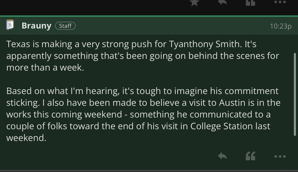 He could have if he isn't. Play devil's advocate and tell us why you feel about this guy's overall approach to his recruitment and how that either translates to the next level or doesn't matter. It sounds like this has essentially boiled down to a turf war, with more coming in East Texas and across the southeast. In the 2021 cycle, Bama signed 7 players from the state of Texas. In 2022 cycle, they signed one, Jam Miller, and they had to pony up and work their ass off to beat Texas for him. In the 2023 cycle, they took 2. Texas made Alabama hustle to land Jalen Hale and then Texas showed that they were gaslighting Bama on their desire for the player by bailing on the in-home the morning of the visit. The other guy was Jordan Renaud who was old-school delivered early. In 2024, they have an IOL that Texas was never interested in from the Metroplex. Hampton matters on some level beyond his own value. This is the kind of shit that we longed for staffs to do at Texas. Send the message - You can come in to this state, but it is going to be a fucking fistfight if we have interest in the player too. You can't beat us with the under the table shit anymore and we are winning on the field too. Get fucked and go elsewhere, motherfuckers.67 points