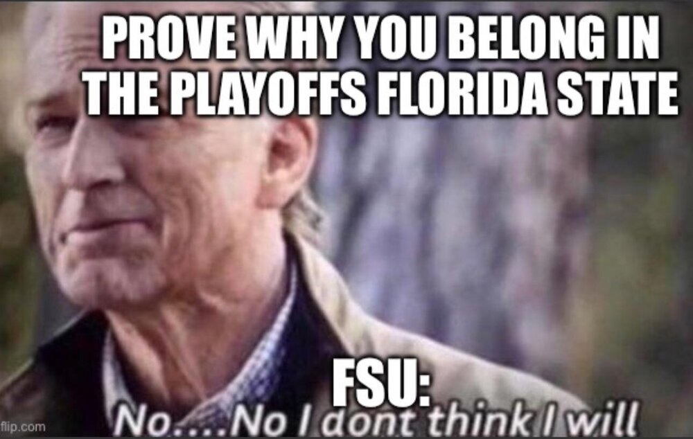 I'm so tired of this Florida state is missing so many players bullshit. Fuck that. They got a little adversity thrown their way...a subjective decision went against them.... and they all quit. That's who they are. A bunch of quitting ass pussies. So fuck them. Fuck them all. Fuck Georgia, too, but at least almost all of their guys showed up.13 points