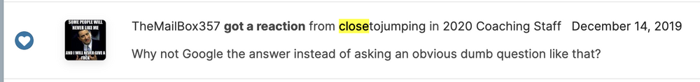 Someone posted the other day that this guy has as much rep as he does because he's spent time in the Cloak Room and struck all of the right chords and got pumped up that way. I think it's fatwa time, personally, and if someone in the CR is counterbalancing that shit, they should get some fucking negs too. Rep from the CR causing threads elsewhere to get fucked up by idiots has been a problem from inception. I realize that Jayden de Laura was a minor when he forcibly and violently raped a friend of his in a stairwell and all, but I hope that motherfucker gets ostracized from ever getting any further chances in college sports. Go get your second chance waiting tables or working construction, you piece of human shit. Motherfucker.21 points
