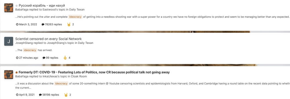 Football ... Basketball ... Baseball ... Other Sports ... Futbol ... 🤫995🤫 ... Gambling ... Movies & TV ... Music ... Hobbies ... Lulz ... Food & Travel ... Daily Texan ... Business and Markets ... Cloak Room ... Help ... For Sale ... Board Discussion ... Subscribe!... Donate!... COOKIE MONSTER!