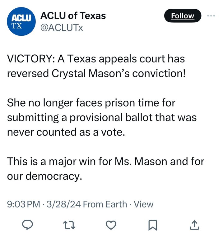 voting illegally 9 times while white and Republican = a fine and reprimand casting one provisional ballot while black when being unsure if you're eligible to vote and you're not = 5 years in the pen15 points