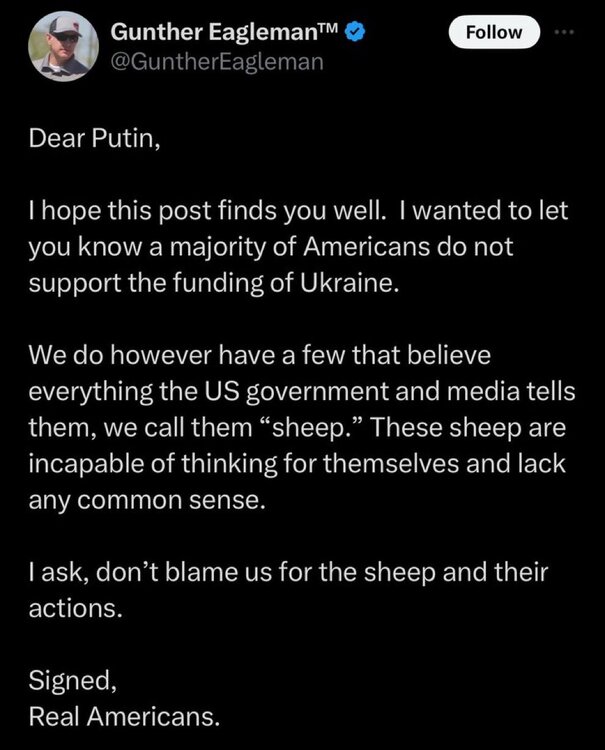 I 100% get not wanting to have the US go on some imperialistic bullshit. But now we have Russia invading the Ukraine, where we just need to help provide them the equipment to thwart INVADERS and somehow people are against that? We aren’t attacking anyone. We aren’t using the CIA to lead a regime change. We aren’t sending troops to die. The US is simply sending equipment to help a county repel an invasion. Why are @Anastasis and MTG so against that?19 points