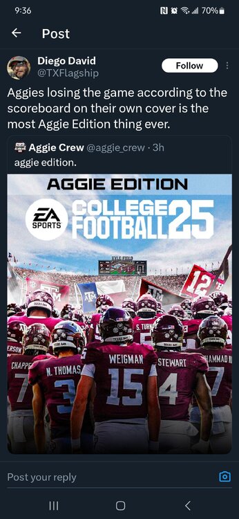 "Make no mistake, Jackson Christian is a nice prospect, but Mike Elko and Adam Cushing got the guys they wanted in Conner Carty, Jonte Newman, and keeping Joshua Moses in the boat. There's a reason these guys are already committed as that's who Elko and Cushing pushed hard for to jump on board. If Elko had made a push, I truly believe Christian would be donning the maroon and white right now." - Looch8 points