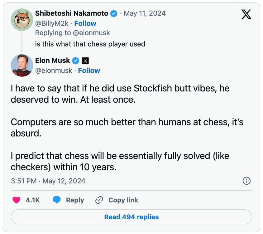 Oh we're back to this one I see. The lazy argument. No, we have 380+ pages of people saying why they hate him, many long before he had his heel turn. The bulk of us hate him because he is a jackass that shows his ass way to damn often. The guy is running his mouth espousing really stupid things. We aren't just claiming he is stupid, we are posting the things he says as perfect exhibits of his stupidity. Etc. You know, let's really break this down I really question that he is smart about some things. He's a good and shrewd businessman, but I would also chalk that up to being lucky as well. First off he had a leg up with money to get started, that counts for a lot and we shouldn't undersell that. Second, he's got super lucky in business. He made X which got beaten by PayPal but offered something and was acquired. He was also forced out of PayPal. He then invested in Tesla. Forced out their founders, but he has made them into a monster company. He did need a lot of subsidies but he built something there. He also made SpaceX. I would argue he doesn't know cars all that well. I think he assembled a team that did a great job. Same with rockets, he doesn't know them well, he just opened his wallet and hired a ton of people that do, And revisiting businessman - how good/smart is he? His current run is not very good. He overpaid for twitter. He's forced through a product at Tesla that has put enormous strain on the company. He has fired people across all of his companies so haphazardly he actually later found he had to rehire people because he cut too deep. He's letting a headstart that Tesla had evaporate and is risking being passed in just about all markets (China - done, Europe and the US ... ?). So ... yeah, is he smart? Or is he lucky and his luck has run out? Again, we've given pages and page of why we don't like him. It's not because he's an everyman with $Billions. You don't have to guess at any of this. Go back and read. And finally Ok, let's play this one out, because it's not really hard. People would look at my post here, etc. They wouldn't find anyone running really dumb conspiracy theories or just general stupidity like Elon is. If they go back far enough, they would see some really dumb things that I very much would attribute to youthful stupidity. They would not see that trend continue or pick back up in the present. I could easily say (because it's true) I was stupid when I was young, I learned and I got some wisdom of age, I matured. That person was me, but I know better now. And I certainly would not be running my mouth blasting out stupid things like Elon does day in day out. I would understand that Uncle Ben was right, with great power (wealth, reach, sway, etc), comes great responsibility. And I would be very measured in what I do online. So NOPE. None of this would happen. I would be more like every other rich businessman you don't hear about. People wouldn't be questioning my leadership or my intellect. They might say "he is or isn't doing a good job" But I would not be on display the way that Elon has put himself.10 points
