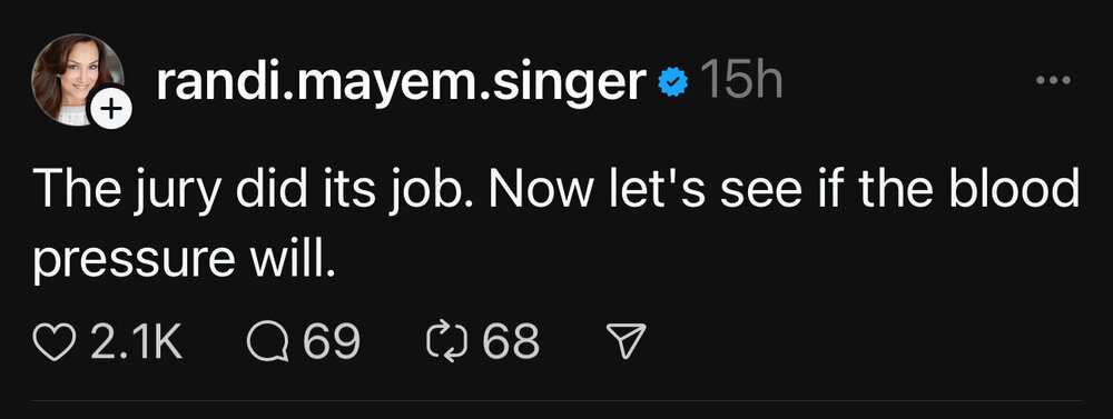 On my way to the office, I might have gone down 5th Ave. Some amazing Trump fan yelled at me, "Suck my dick, bitch." Lol. Not even with Icono's mouth. Glad to see misogyny is alive and well with Trump stans. FYI, more media than Trumpies. And most Trump haters are where we have all been during the trial, at work because we have jobs and responsibilities and aren't members of a cult.33 points