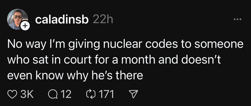 One sign of how incredibly fucked up things are is that we just accept that if elected, Trump will terminate these cases, to the extent that he can. That is so utterly corrupt that it is beyond comprehension. Of all the fuckery Nixon got up to, it was the similar Saturday Night Massacre that sealed his fate, not the break-in, not the cover-up, not the tapes revealing same, but the attempt to short circuit proceedings against him. Fuck Trump. Fuck the GQP. Fuck anyone who supports these notions.27 points