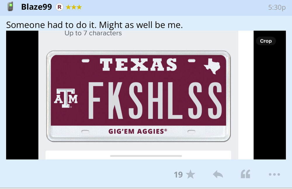 Good point. They are the kings of incredulity. They closely examine any presented fact before embracing it as true. You've got to wake up way before the early bird to fool these guys. Schlossnagle's burner phones and him throwing the CWS are truths to be carved in stone. Now they just have to wait awhile to see which "prominent MLB manager" leaves the pros to come to his (and everyone else's) dream job in Destination Station home of the Texas A&M Fightin' Texas Aggies from Texas!8 points