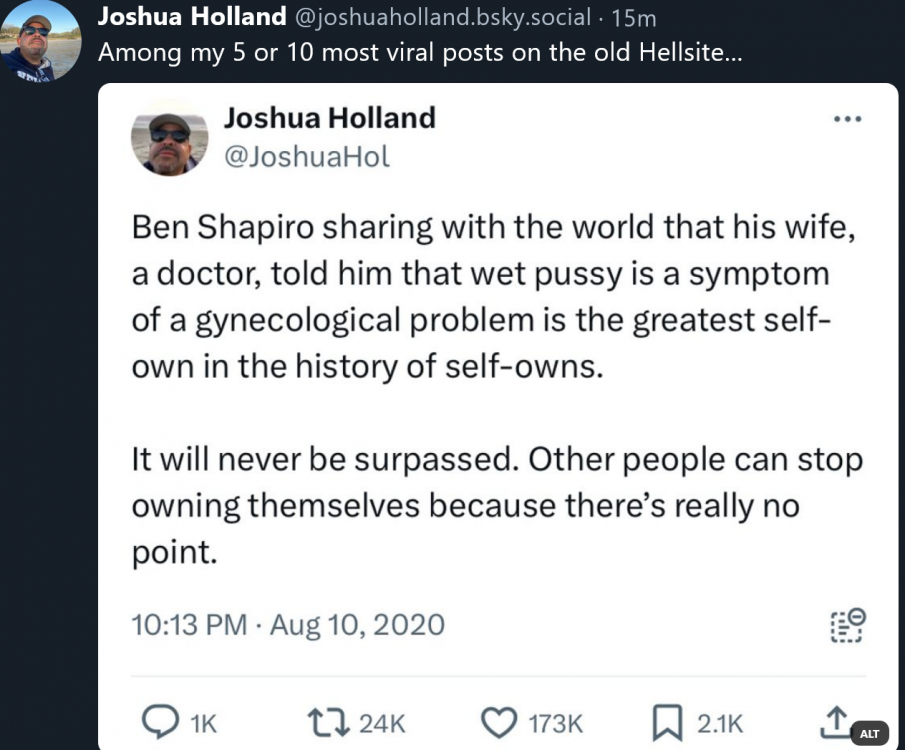 I think I posted this in one of the baseball threads but never here. Brauninger is involved with a select baseball organization called, shockingly, "Twelve", and they're based, shockingly, out of Katy. After the Schlossnagle Maneuver, they announced to the parents of their organization that no players on their rosters were allowed to visit or talk to Texas. They're not a good enough organization to make that demand, but they are clearly insecure enough and dumb enough. When you see their teams, you know who they are before you can read the names on the jerseys. The coaches are all either swole fat or just fat, all with beards and many mullets, sunglasses with the connectors, usually in crocs. The dads fit the same profile, all wearing maroon at least partly. The moms are as stereotypical as you could imagine as well, jorts and bedazzled tops, "BASEBALL MOM" on either hat, shirt, or both. Baseball earrings as gaudy as a Mardi Gras float.16 points