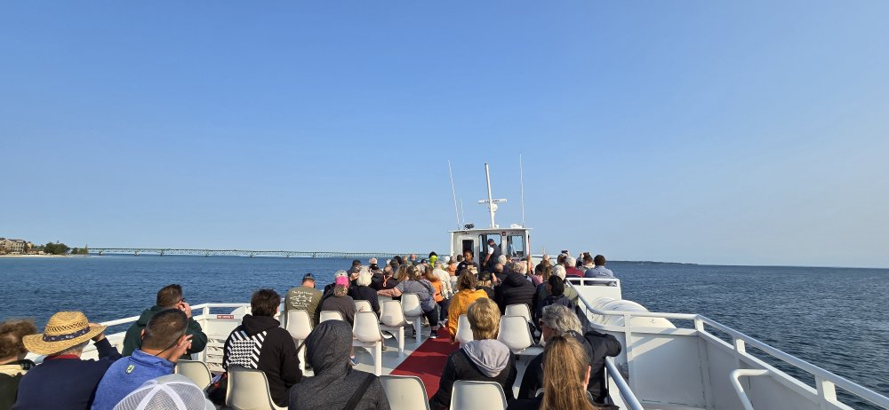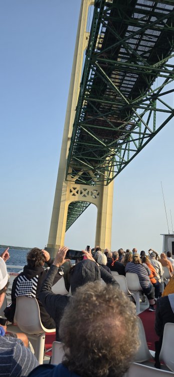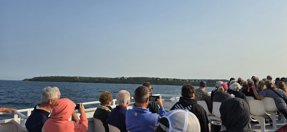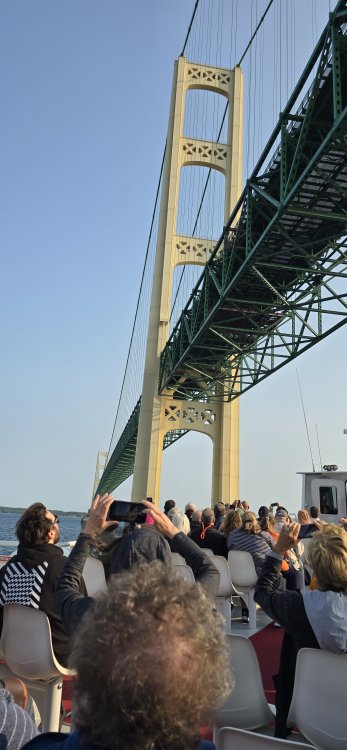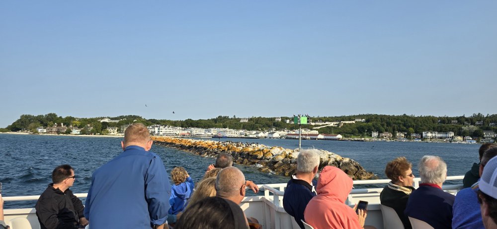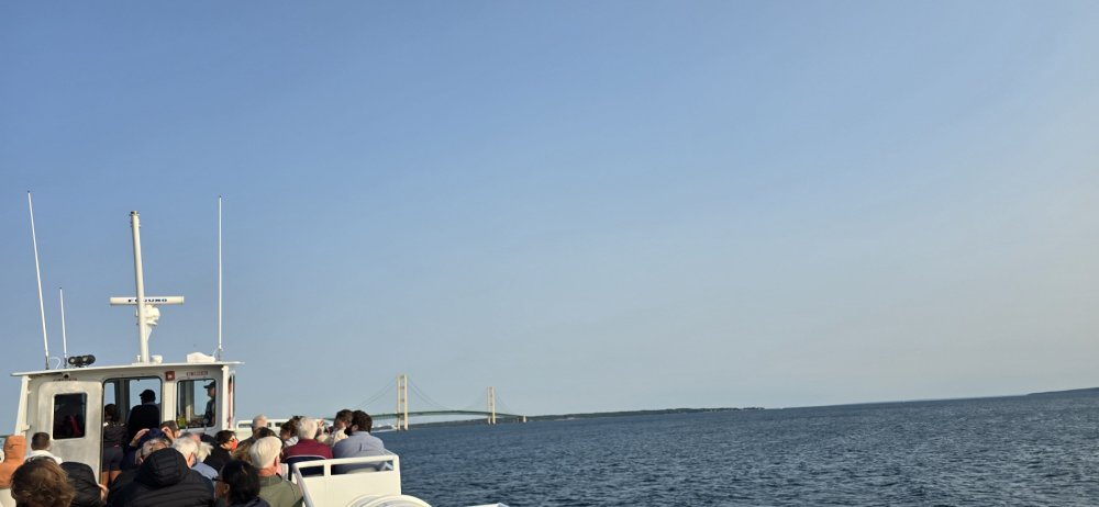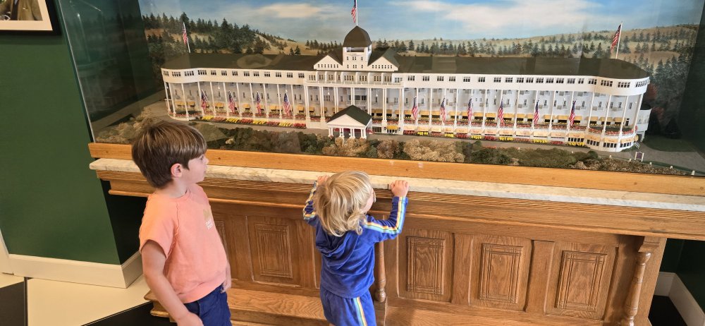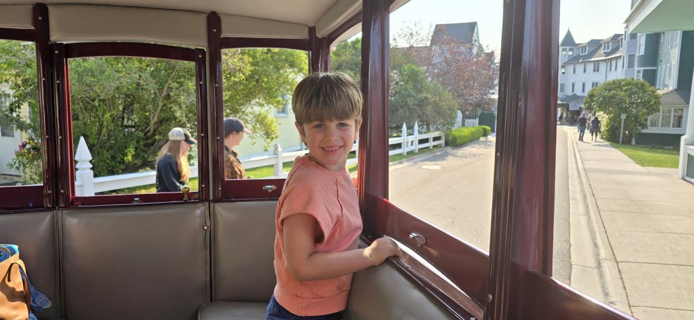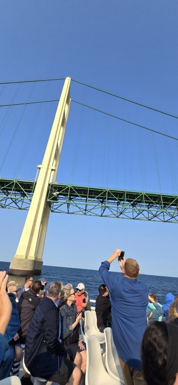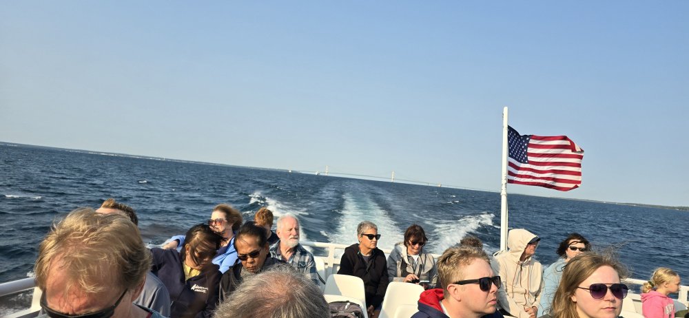 Alright. It's been a fucking morning. Kids ate paw patrol Mac and cheese for breakfast which was not enough fuel to get us to check in at the Hotel, but damn close. We left early from the motel we stayed in and they retroactively decided dogs weren't allowed when we were leaving so they tried to hit us with a $50 fee. I told them to pound sand and take it up with Expedia. Boarded the dog JoJo who has been the best behaved on the entire trip (including me) Got to the ferry place and kids and wife were in full meltdown mode already. From the 9AM to 10AM time slot they will actually detour slightly to go under the bridge instead of straight to the Island. We got the 930. Gunnar getting horned. 20240904_093017.mp4 Sights from the boat dock to the bridge. Viking cruise ship crossed under the massive bridge showing you the scale. Really incredible engineering here. View of the island and some rich peoples mansions View of the Grand Hotel where we are staying from the boat. Map of the island Got a horse drawn carriage up to the hotel and snapped a bunch of shots. Didn't get one before hopping on but got one on the way down. Woody and Buzz were our horses. someones gotta shovel the shit! Check in isn't till 4PM so we are early as fuck and have to figure out how to kill 3 hours without a nap for Rafa. Found a cool arcade the boys had a blast. Ate lunch in town after walking down and had some smoked whitefish dip. Rafa crashed out hard on the walk back and is currently parked in the corner in the room. random shots18 points
