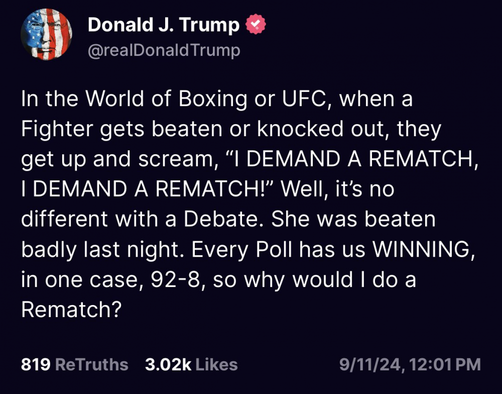I am confused by a few things in this post. I will go over them individually. It bothers me that she did better than people expected her to. I wonder what motivates that thought? She is a career courtroom lawyer performing in what is almost a courtroom setting. The studying and prep. The strategy to rattle the opponent or witness. Selling herself to the American people or jury. I have been saying she is going to wipe the floor with him and she did exactly what I expected her to. This isn't a politician with a law degree, this is a lawyer turned politician. No one should be surprised. "I can't believe Quinn Ewers threw a football", is what this equates to. What was ABC supposed to do when Trump stated people were eating animals, killing babies post birth, and saying the election was stolen from him? The Charlottesville comments were dog-whistling, and I am an expert on that because that technique was built on the backs of black people like me. But if you need proof of those comments being dog-whistles look at what happened shortly thereafter. All the Supremacist groups immediately joined MAGA and have remained with him ever since. That is all you need to know. Since then he has made many other comments including his direct orders to the Proud Boys. Now onto this project 2025 thing. It is not hard to attach Trump to project 2025 if you took the time to crack it's pages. Here are things Trump has done, tried to do, or talked about doing that align with the plans in Project 2025. Turning over Roe Mass Deportation of Illegals Eliminating the Dept of Education Eliminating subsidies for electric vehicles Attacking DEI Pulling out of the Paris Accords Still not convinced yet? Trump said he knows nothing about project 2025 and doesn't know anyone over there. 140 Trump advisors and aides had a hand in writing it. JD Vance wrote the forward. Here is a picture of Trump on a plane with Kevin Roberts, the author of Project 2025. There are other pics if you just took the time to look. Still not convinced? Here is hidden video some journalists did where Russell Vought, co-author of Project 2025 is explaining Trump distancing himself from it. Still not convinced? Here is Trump talking about how the good people at The Heritage Foundation have a detailed plan for how they are going to go forward(video on the right}. He doesn't name it by name but you know what this means right? So now we have the alignment of Trump policies. Many people from Trump's camp involved in the writing. His VP candidate writing the forward. Pictures of him meeting the author. The other author telling you why Trump is distancing himself from the project UNTIL they get in office. Then finally Trump praising the Heritage Foundation for its detailed plan for the future. If you STILL are trying to say he doesn't know anything about it you are simply a bad actor and flat out MAGA. We see you no matter how hard you try to "both sides".29 points