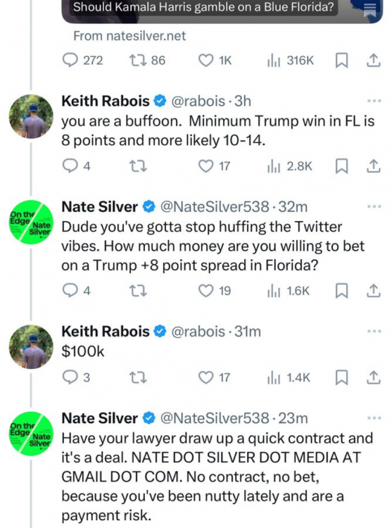 It is October 4 and this is my (current) prediction - Harris (and Dems) look particularly stronger in the Midwest than they do in the Sunbelt, just like in 2022. I currently have Michigan, Wisconsin and Pennsylvania in Harris' column, along with Nevada, which has gotten progressively less and less buzz lately, making me think it's invariably in her column. Harris 276, Trump 219 We've gotten mixed polling in Arizona, Georgia and North Carolina. I'm more inclined to put Arizona (abortion on the ballot + Kari Lake) and North Carolina (Mark Robinson) in Harris' column as of today and Georgia as a toss-up still. The lack of any big statewide (gov or Senate) race in Georgia likely keeps it as tossup/tilt-R. I think it will be the closest state of the 7 swing states. Harris 303, Trump 219, TBD 16 (Georgia)16 points