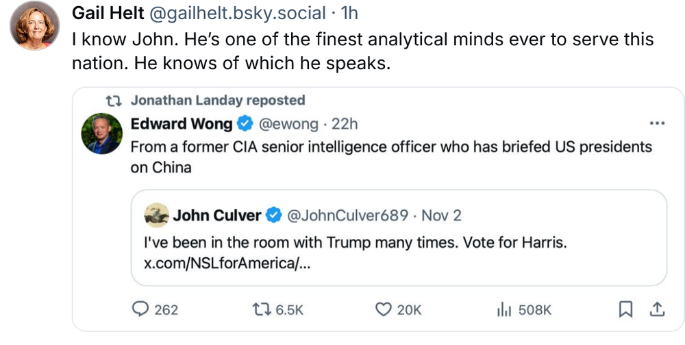 I can’t get into weeds buuuuuut internals look great, it’s the largest GOTV campaign in US history, Philly canvass lines have been a mile long and women have been undersampled in every poll and will break heavy for the one who didn’t brag about eliminating their rights (shocking!). Also PA has 450k Puerto Ricans who fucking hate that man now and have been reminded daily about why.29 points