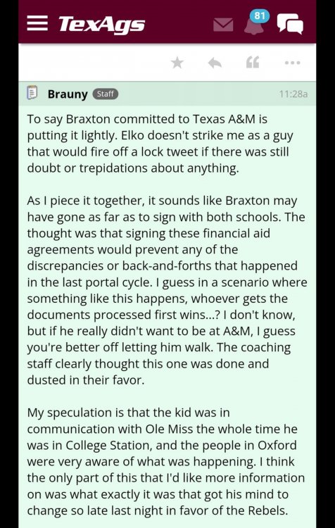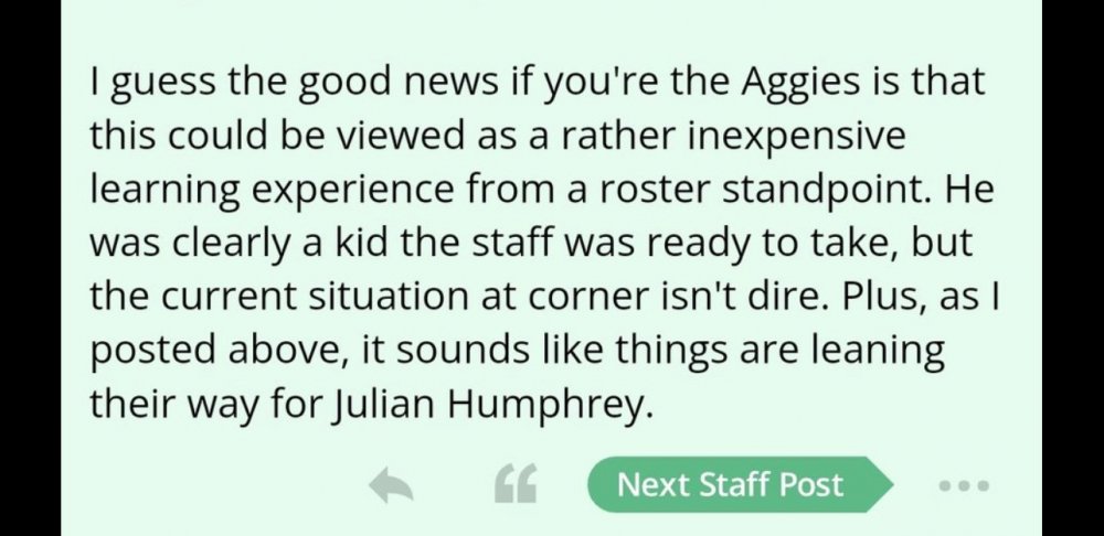 Imagine an Aggie saying "just book mark for when they lose multiple games including games they should've won and miss the cfp" about another school.21 points