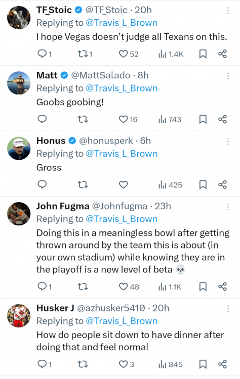 I’ll be cheering for Arkansas. I feel obligated to despise them due to history and legacy, and I really do hate their “if we beat Texas and go 1-11, I can live with that” jihadist shit, but my disgust for Tech is current. Tech is actively working on getting access to the PUF. They were constantly jihading Texas just like Arkansas anyway. The Double Eagle guy thinks he’s Phil Knight with a 20th of his worth and is fucking with multiple transfers and recruits every cycle. So fuck those dipshits. Go hawgs!10 points