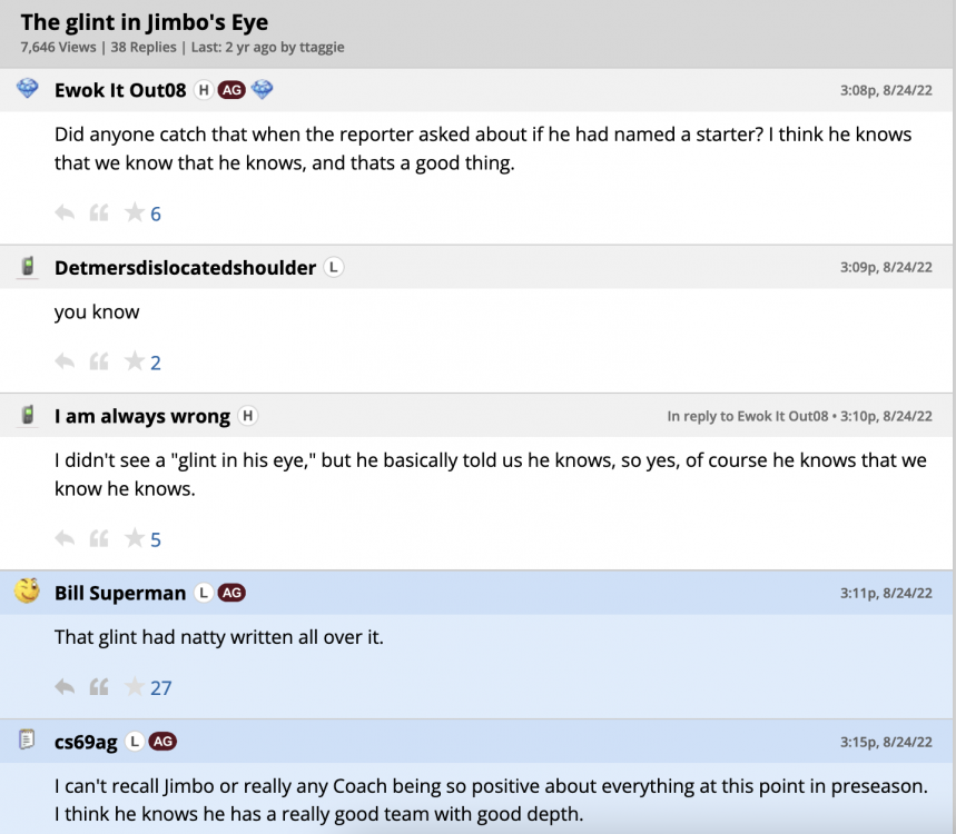 You guys fixate on the dumbest shit. The walk-on QB is completely irrelevant. Thereβs actual portal stuff happening.9 points