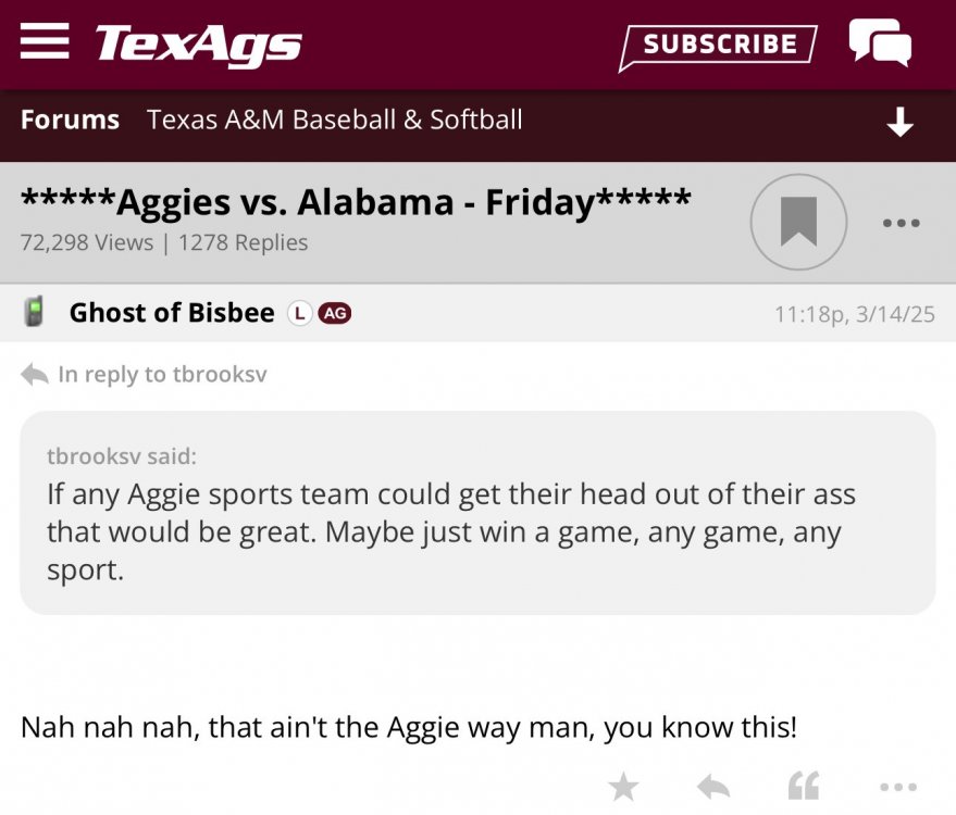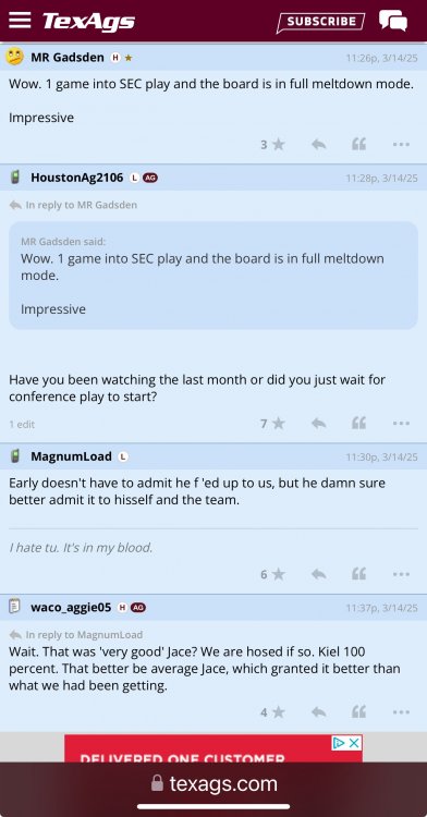 Not βpremiumβ as in βhaving to pay to see this threadβ, but βpremiumβ as in βsome gold in this threadββ¦ Top of the current last page of Friday nightβs game thread. https://texags.com/forums/8/topics/3532797/0#discussion UPDATE: will post a couple of posts down while I look up βhisselfβ to see if thatβs even a word.9 points