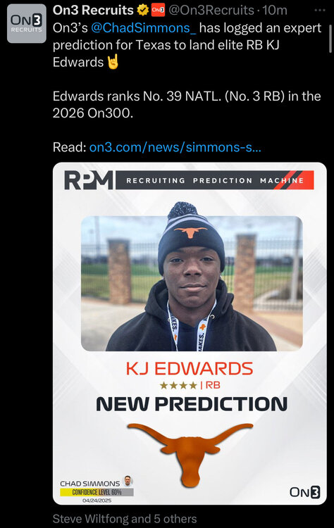 From Bobby today, below. His Butler comment is only the kind of thing heβs going to post when a coach is asking him to do so, IMO. **** Time for some news and notes (a lot of it on the freshmen): - KJ Lacey continues to look the part of a future starter at the D-I level. Lacey has a good presence, delivers the ball on time and has some escapability to him. He does not have the arm strength of Arch Manning or Trey Owens, but he has some wily-ness that makes him difficult to defend at times. - James Simon is ahead of Ricky Stewart of the two freshman RBs. Christian Clark is still running third team behind Tre Wisner and Jerrick Gibson. Some are saying Gibsonβs body is leaning out some this spring, which is giving him a little more bounce in his step. - Parker Livingstone is the teamβs go-to receiver currently. The clear no. 2 is Daylan McCutcheon. McCutcheon continues to be well ahead of the three other freshmen, as Jamie Ffrench, Kaliq Lockett and Michael Terry get accustomed to the intricacies of a pro-style offense. None of those guys played in offenses as sophisticated as McCutcheon did in high school. Aaron Butler is not a factor at the position. - Nick Brooks continues to receive high praise. The words βfirst-round pickβ get used by a lot of folks when describing him. Brandon Baker, I am told, also seems to be taking a real step forward in the last couple of weeks. - Justus Terry and Lance Jackson are both receiving a lot of early praise. Terry is working primarily at strong-side end currently. Cole Brevard and Alex January appear to be a step ahead of their cohorts on the interior. Both Josiah Sharma and Myron Charles are showing real glimpses of why Texas liked them so much in recruiting. - Perhaps the surprise of the second half of spring camp? Linebacker Brad Spence. - Derrick Williams is still not all the way back. And he is only repping at safety. Jelani McDonald continues to improve. - Kobe Black has reportedly had a good spring, enough so that Texas is unlikely to look in the portal for experienced depth at corner. Kade Phillips has also shown some real value there early in his career. - Graceson Littleton may be the biggest surprise of the defensive freshman. The Tampa native is a future player for the Horns. He is giving Wardell Mack a real run at nickel.26 points