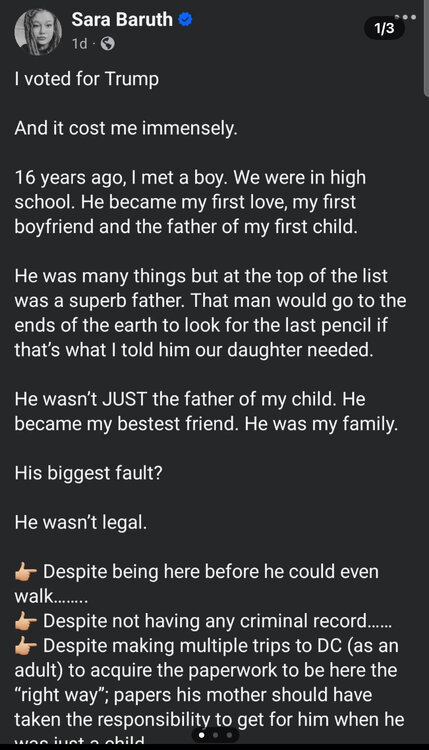 These people desperately want to believe there are tens of millions of illegals here doing crime and hurting 'real' Americans in order to justify the government actions that trample the rights of everyone. The idea that most 'illegals' are here to work, support a family and not hurt other people is so unlikely and foreign to them, despite the anecdotes they are posting on and all the data and statistics to the contrary.11 points