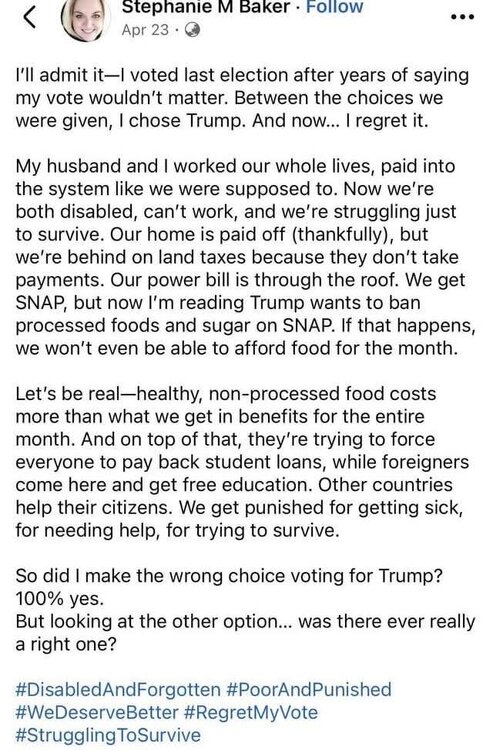 Also "worked our whole lives" and that profile pic don't really match. She looks maybe 30? Plus still having student loans would indicate she's fairly young. No idea why they are both disabled, probably a scam that needs to be investigated by DOGE's top men.11 points