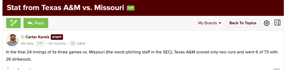 I know itβs baseball. But aggy just gave Mizzou their first two SEC wins, and their first series win of their season.9 points