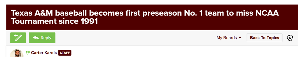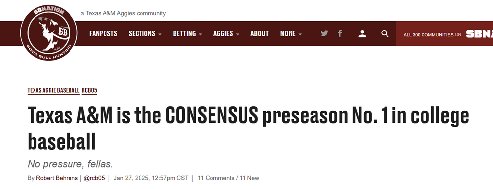 Breaking News: Texas A&M has accepted a bid to the baseball NIT. The Aggies, defending almost-national champions, have been named the #1 seed in the field and will host SMU in a 3-game series at Olsen Field Friday-Monday.12 points