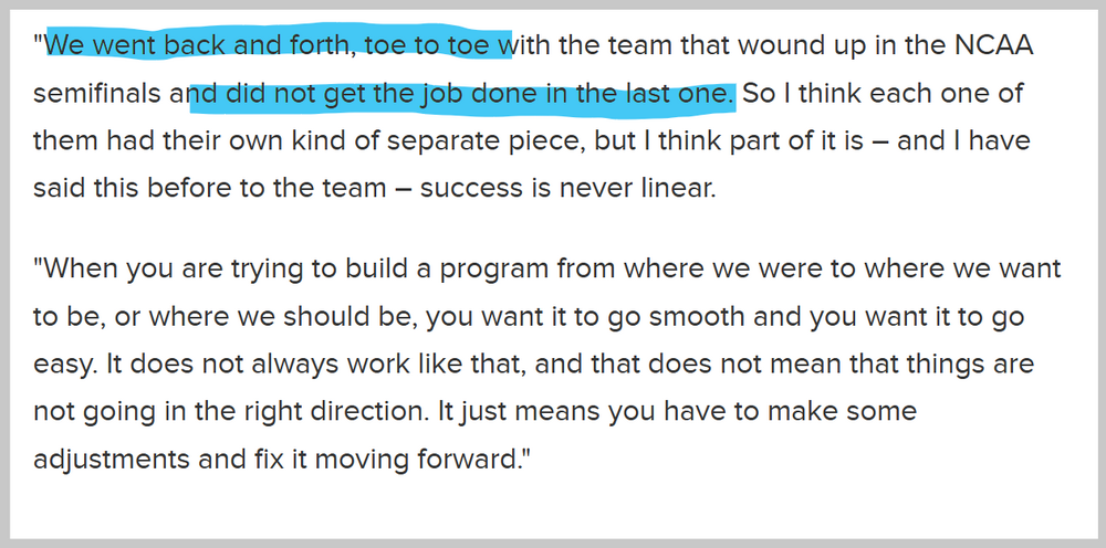 I’m going to be surprised if they’re able to get anything done beyond a Pierce-level hire. They don’t have the money to just go nuts or they’d be spending differently across the board already. The environment there is toxic. They’re surrounded, like in every other sport, by powers in the sport with better history, better backgrounds and locations and more resources. Anyone going there is making a pure money grab. Vaughn would be a fool to do it. O’Connor? Sure, take the money. Sullivan and Vitello? LOL. The one guy they could get that I would have no interest in seeing at ATM is Canham. So I’m sure they’ll not even contact him.9 points
