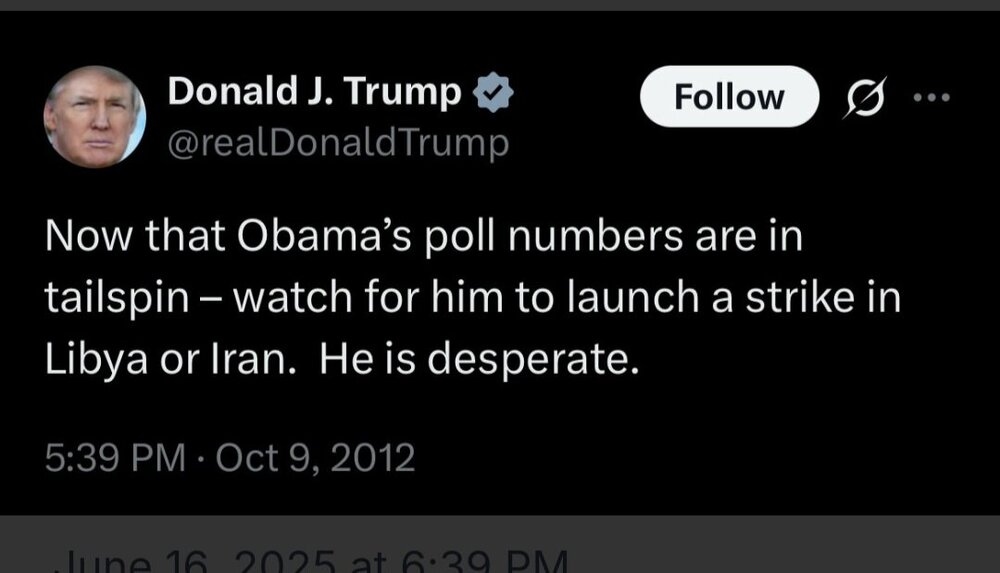 Let's be clear on this fact: The war Israel is waging on Iran is likely an illegal one. Israel states that this is preemptive self-defense, but there's no indication that any attack by Iran on Israel was "imminent," meaning an immediate and unavoidable threat as defined by the well-established "Caroline test." In addition, their actions are a violation of the UN Charter without a Security Council resolution justifying it. This was a unilateral attack by one nation on another, with civilians (media and scientists) as targets, also a violation of international law. Let's also be clear on another fact: Israel's attack on Iran scuttled ongoing negotiations between the United States and Iran. While it can be debated that those talks might not have gone anywhere, it cannot be debated that Israeli interference disrupted discussions between the two countries. Their interference ensured that the negotiations ended. I don't know about y'all, but I'm not real keen on allowing a third party to fuck with our international affairs. It makes us look weak when Israel can get away with ending our negotiations before we have a chance to say we're done talking. Let's also be clear on yet another fact: This past Thursday, Netanyahu said that Israel has the power to take out all of Iran's nuclear facilities by itself, even without US involvement. Fine, do it your fucking selves. Given those three facts, I really would prefer the US not get involved in another illegal war in the Middle East, especially one that we're getting dragged into and in which "regime change" is a goal without a clear plan of succession, with the risk of destabilizing an already teetering region and the recent history of our nation building efforts in two of Iran's neighbors. That's folly.15 points