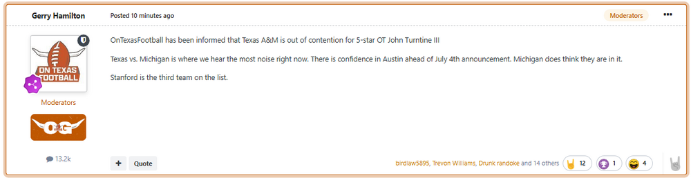 If ya'll want some cool aid, Wiltfong says he still likes his Texas picks for Ojo and Turntine, says Texas is surging for James Johnson and can see him and Guervil both at Texas, and that Texas is a big threat for Tyler Atkinson.20 points