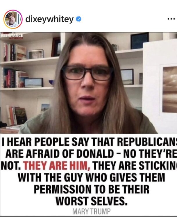 Mary is flat bringing the truth here. Not all, to be sure. There are people too ignorant and gullible to get out of the bubble of self-selected facts. I know several non-horrible (not racist or nativist) Republicans who have empathy for other people and are not hate fountains. They live in all-MAGA families (and neighborhoods), and are people who place more value in not destroying relationship with those family/neighbors/church members than they do voting against Republicans and losing the societal acceptance that they feel they cannot live without. We are a tribal species, and we sometimes forget how important that is to humans. this does not excuse them or forgive them, rather, it explains the incongruous behavior. But for elected Republican leaders - almost every one of them have no character and are finally happy to be able to say out loud the personal beliefs that they hold.7 points