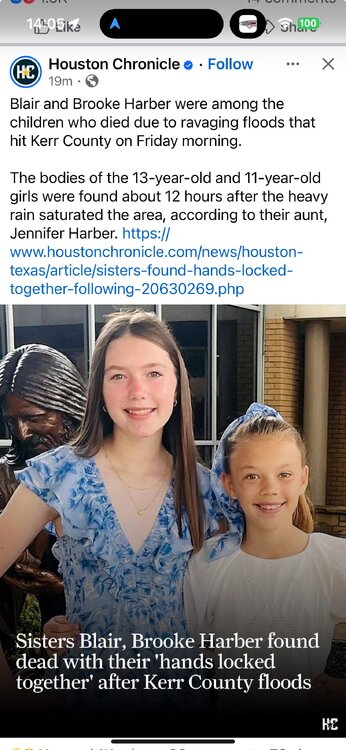 I’d like to apologize to @BurntOrange&White @po elvis and @futureman for the vitriol. I’ve deleted the personal attack posts. I found out today that one of the missing campers, who was the young cousin of sisters who my daughters have known their whole lives, was one of the girls in the Bubble Inn Cabin and they recovered her body this morning This whole thing is terrible, and is bringing up some old personal and professional trauma for me in ways I never expected; plus I have two daughters who rationally I know are not in harm’s way but viscerally it feels like they are. I stand by my posts about facts over feelings; if you don’t like a post because you feel it’s political maybe just scroll past. It takes at least 2 to send a thread off the rails19 points