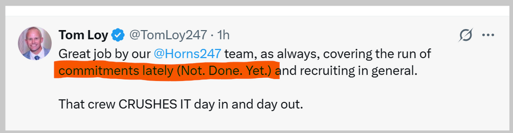 I keep thinking that we need to get Derrick Johnson to keep inviting the top linebackers in the country to his linebacker school, where current UT linebackers also happen to be training.30 points