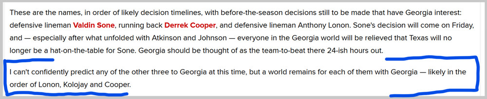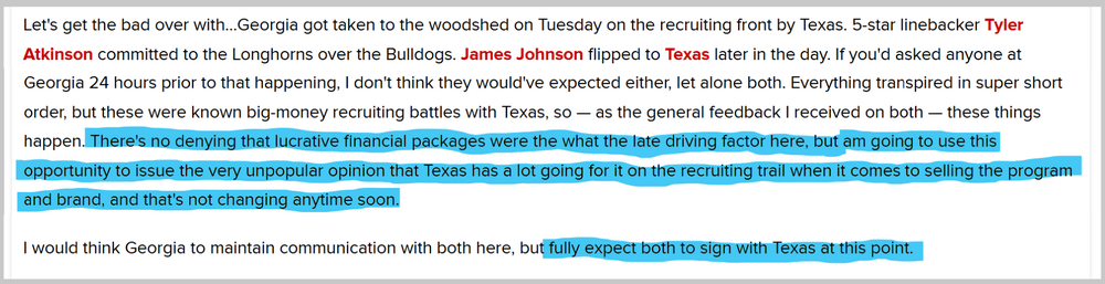 Looks like Jeremy Johnson put in a Texas CB for Derrek Cooper. Jeremy Johnson writes for the Georgia On3/Rivals site.21 points