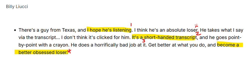 1 Why would anyone do that when there's a summary? You ever listened to yourself, William? Beating. Beeeee-ting. 2 The word you're looking for is summary. A transcript is a word-by-word record. A short-handed transcript, I'm guessing, is a transcript that needs more employees. I know, William, it's the short-handed transcriber who makes you sound dull-minded again here. 3 I'm sure you're right. Listen, I have plenty of posts around here. Pick one and show me how it's done. Oh, and thanks for reading! 4 That's a mission statement for one of our schools.32 points