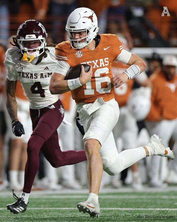 Sark saved his job tonight. The team stepped up in the second half. (They sucked in the first.) The intensity was amazing. We saw some first-class football. THere are some real stars on this team. For some reason they lost their way early on. Arch didn't display the perfection we all insist on, but he made big plays when they counted. The TD run was epic. Going to Wisner made all the difference in the world. It opened everything up. We must always have a dominating run game and set the tone with it. Baxter ain't it. We need a up n coming star backup. The D shut the fuckin' Ags down. The picks were unexpected and quite amazing3 points