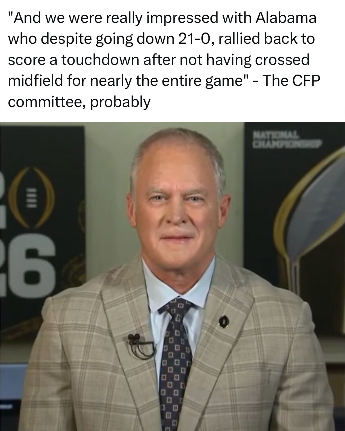 They got it correct putting in Miami over ND. They beat them head to head and are in a conference. Join a conference or fuck off. ND lost to aggy, Miami, their 2 toughest games. Then ran the table on a creampuff schedule they have every year. Until they join a conference, they should have a much smaller margin of error. If they had just 1 loss, then sure, put them in. I believe they only had 1 loss last year. But the CCG are pointless now. Ohio St vs Indiana wasn't even for anything. Both got bye weeks regardless. Bama could have sat at home, rested and gotten the same result, a playoff spot. Virginia/Duke resulted in nothing. 1st round is some ugly matchups. 2 blowouts coming and then we get a rematch of Bama/OU, 2 of some of the worst offenses in P4 and we just saw that game a few weeks ago and it sucked. Miami vs aggy gives us 2 pretty bad QB's, especially Carson Beck, who can easily give you a 4-5 turnover game any given game. Ole Miss, Oregon, aggy, Bama would be my picks. The aggy and Bama games are hard to predict because all these teams are such wildcards and have erratic QB play.9 points