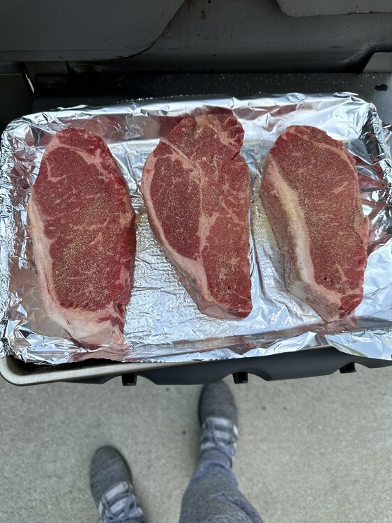 21. NY strips from my butcher. Small spot all natural shit organic. Cuts like butter