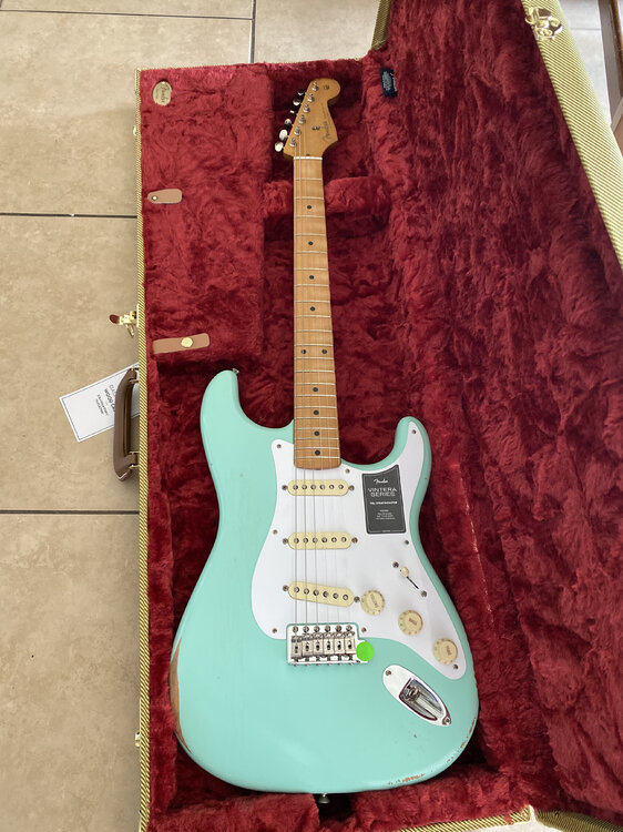 11. Bought this today... local music shop. It’s a Mexican Ventura strat road worn. Think I’m gonna return it for the Gibson SG standard.. what says surly? I can’t do both the SG is black