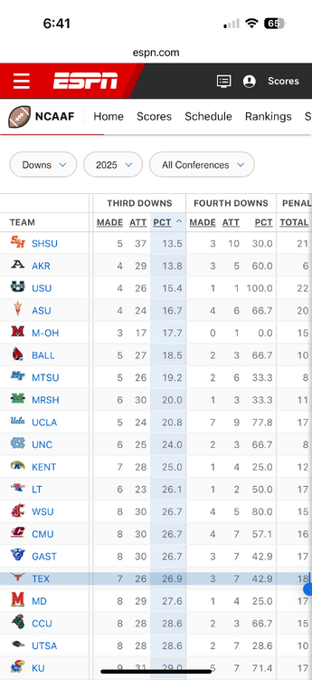 1. Texas is only converting 26.9% of 3rd downs, one of the worst in the country.
