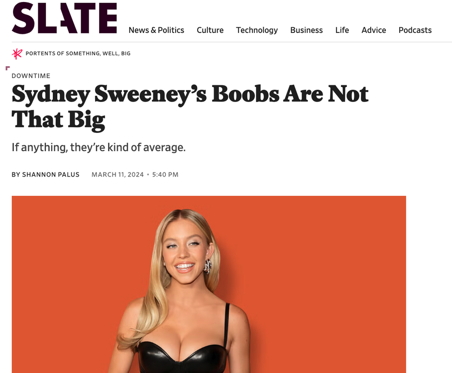10. Does she, though? Slate is not so sure. https://slate.com/human-interest/2024/03/sydney-sweeney-breast-size-oscars-snl.html