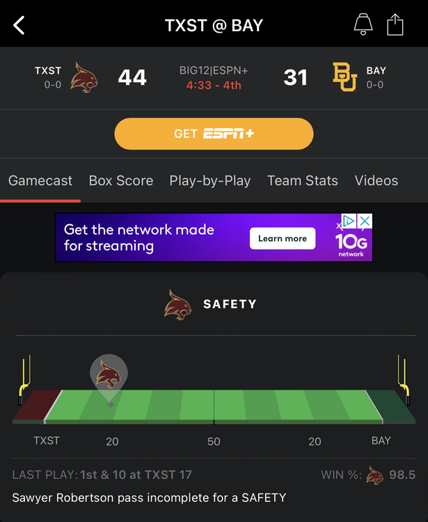9. My flight was cancelled. Finally got on a flight to Charlotte, but we’re sitting at the gate now. At least I got to meet some nice Texas fans while waiting on standby. John Cornyn (no CR) will be at the game.
