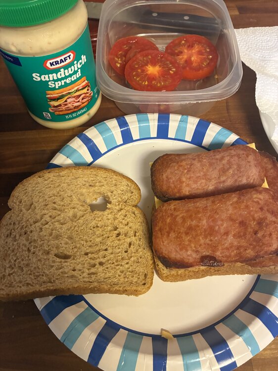19. It’s tomato time again at my house. Fried Spam, Kraft cheese slice and homegrowed tomato. Delicious.