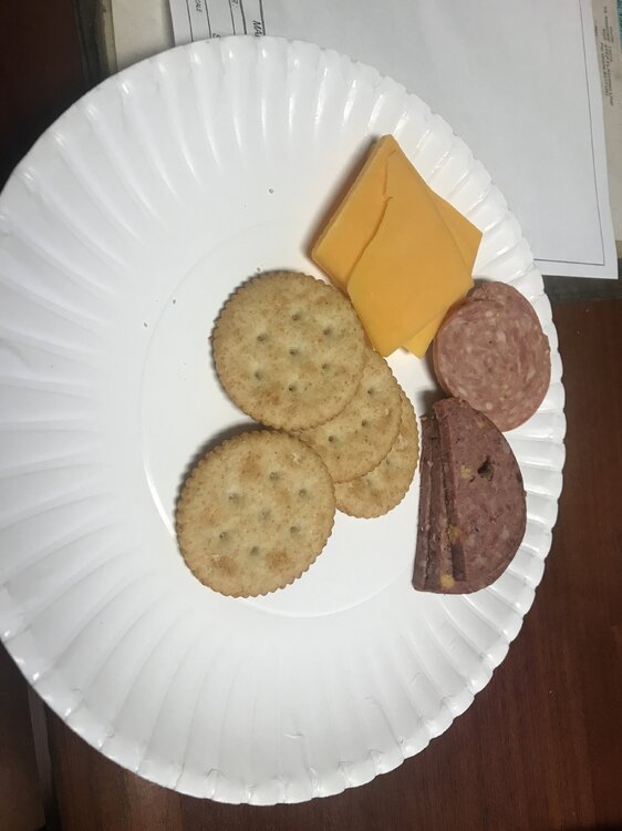 5. Mid morning snack. The darker summer sausage is smoked Canada Goose. Delicious. I’m not sure what kind of cheese was in it but it was bland. Shoulda left it out. The other sausage needed help. No flavor. One of our customers made both and sent it home with our field tech. Call me Brat, I can’t get it to rotate and don’t care enough to try harder.