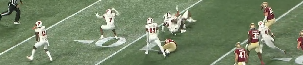 7. Guy could have got the first but ran out of bounds. Dumbass.