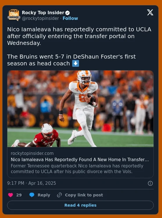 7. Thomas Goldkamp: Nico Iamaleava to UCLA is done deal