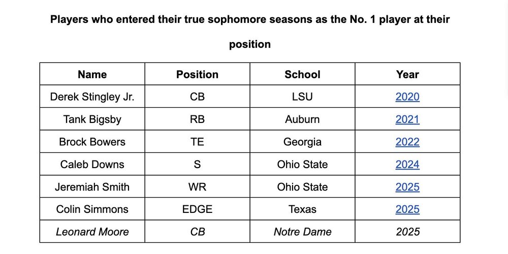 17. Wide receiver is a known weak spot but there hasn't been much talk about how mediocre the RB room currently is. For all of Jaydon Blue's deficiencies, he was fast as hell and a vital backfield weapon last year. This year we have no speed at the RB position. Wisner and Gibson are slow and not good pass-catchers, Baxter and Clark are still recovering from significant injuries and the freshmen will take time to adjust to the speed of the game at the college level. Look at the touchdowns Blue scored against Clemson. None of the backs currently on our roster have the speed to score on those plays. Against Ohio State, Blue and Golden were our only two offensive skill players who had the speed to make an impact against Ohio State's defense. We've become much slower at the skill positions overall this year.